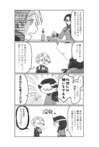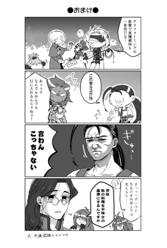 先生がメシマズなのは知的好奇心に負けた結果ぽいなぁと思いました。「やっぱりまずい」と言いつつ無限に鳥のエサを食う男からメシマズ認定されてるのってなかなかだもの…でも、普通に下手でもそれはそれで好き。